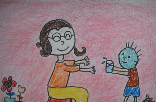 小明看见妈妈难受的样子,连忙拿来了温水和药给妈妈吃。妈妈说:“好孩子,谢谢你了”!